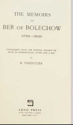 - The Memoirs of Ber of Bolechow 1723-1805 by Dov Ber Birkenthal (Genre: Memoir)